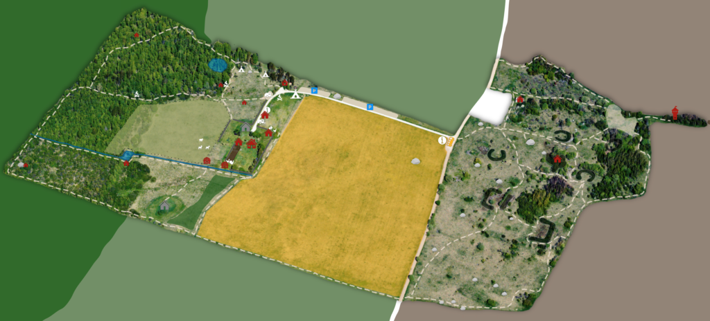 Väike õpipaik – ala, mis on askeldamiseks sobilik igas vanusegrupis ja erivajadusega külastajale. Siin asub kodukohvik, elavad väikesed koduloomad ja -linnud, saab mängida ja askeldada, uurida lähemalt levinumaid maavarasid ja koduaia taimi ning teha palju muud. Sitikla – putukate uurimisele ja komposteerimisele pühandatud ala ühes kuivkäimla ja paljude metsikute iselagunemise teed lastud paigakestega. Metsarajad – turvalised ja salapärased, võimaldades kohalikku liigirikast ja omasoodu areneda saanud maastikku külastada ka kõige pisematel ja ratastoolis inimestel. Paljatallarada – meelte ja julguse proovimiseks, ka lihtsalt lustimiseks. Väiketalu – kanad, kalkunid ja kitsed, köögiviljaaed ja kodu rajamise kogemused. Koduköök – gruppide ja perede toitlustamiseks ning kodus kasvatatud toitude tutvustamiseks. Suur õpipaik – müstiline, ca 7ha suurune metsik ala maastikumängude ja rühmatööde korraldamiseks. Mullavallidega piiratud tuulevaiksed platsid erinevate teemade käsitlemiseks ning ohtralt eripalgelisi elupaigakesi.